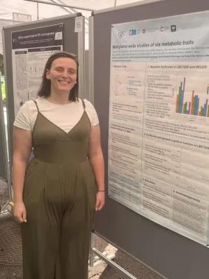 Hannah Smith is a PhD student in Professor Riccardo Marioni's research group at the Institute of Genetics and Cancer. Here she talks about her project investigating the relationship between DNA methylation data and health outcomes, and her career so far. Please tell us about your research project and how your work involves genomics or makes use of genomic technologies My research project involves using statistical techniques to investigate the relationship between blood-based epigenetic and proteomic markers, several risk factors and brain health outcomes. I hope to find biomarkers of brain health that can help to identify individuals at risk of neurodegenerative disorders such as dementia. In the context of my project, brain health outcomes include cognitive function and decline, structural neuroimaging measures and dementia diagnosis. I predominantly work with DNA methylation data which is generated using genomic technology that can profile over 800,000 DNA methylation sites across the genome. In my project, I use data from large cohort studies including Generation Scotland, the Lothian Birth Cohorts and the Health for Life in Singapore study. Hannah and her dog Izzy Please summarise your previous work and career so far.I first started an NC course in Applied Science at Dundee and Angus College back in 2015. After that, I progressed onto their HNC Applied Science which allowed me to apply for an Integrated Master's degree in Molecular Biology at the University of Dundee. I am now a 4th year PhD student in the Translational Neuroscience PhD programme at the University of Edinburgh. I have published two papers so far during my PhD: the first study looked at epigenetic scores (EpiScores) of blood protein levels as biomarkers of brain health, and the second study was on EpiScores of metabolic traits. I also had the chance to present some of my work from the second paper at the Clinical Epigenetics International Conference (CLEPIC) last year (see photo). Hannah presenting a poster at CLEPIC Hannah's work was recently published in the American Journal of Human Genetics in an article entitled 'DNA methylation-based predictors of metabolic traits in Scottish and Singaporean cohorts'. Click the links below to read the article and a news story about it's publication. Click here to read the article (external link) Click here to read the news story on the Institute of Genetics and Cancer websi… What inspired you to follow your career path?I don’t really have a good answer for this. I enjoyed science at school and have always found learning about biology interesting; particularly anything involving the brain. I knew that in whatever I did for a career I wanted to help people. I often considered career paths such as nurse, paramedic or police officer. I thought studying biology would open up several career paths for me so I applied to college and things have just kept progressing from there! If you could have tea with anyone (alive or dead), who would it be? What would you talk about?Oh this is tricky.. maybe the criminal psychologist Dr Julia Shaw from the Bad People podcast. I always enjoy their discussions on human behaviour and why people do the things they do, so it would definitely be an interesting chat. I also have to say Adele as she’s my favourite singer and I think she’s hilarious! What is the most unusual thing you have done during your career? In my Honours and Masters projects, I worked with Drosophila Melanogaster (Fruit flies), which a lot of my non-researcher family and friends thought was very strange although it is a very common model organism! I also extracted DNA from cat faeces which was an odd undergraduate project! Do you have any advice for people wanting to pursue a research career? What do you like best about your job? What do you like the least?I would advise people to really consider research as a career as there are so many interesting questions in science just waiting to be answered! My advice also would be that there is more than one way to get into science and research so explore all the options available to you. I’d probably say the best thing about my job is being able to work on several different projects – it really keeps things exciting. I also work with a brilliant team and have met lots of great people working in science. The thing I like least would have to be my commute to work as I live quite far away from the office and am not much of a morning person. How do you spend your time outside of research? Is there anything else you would like to tell us about? I recently got a dog called Izzy who takes up lots of my time and I especially love taking her to the beach (see photos!). I try to spend as much time as possible with family and friends. I’m always up for trying new hobbies (see photo above for my first time indoor climbing). I play for a recreational football team weekly and really enjoy reading both fiction and non-fiction books whenever I can (my goal is to read 30 books this year). I love to listen to all kinds of music and podcasts – it helps me get through that morning commute! LinksInstitute of Genetics and CancerHannah Smith X (formerly Twitter) Profile (external link)Hannah Smith Bluesky profile (external link)Marioni Research Group website (external link)Marioni Group X (formerly Twitter) Profile (external link) This article was published on 2025-02-02
