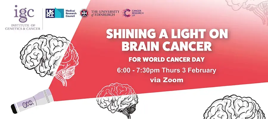 Feb 03 2022 18.00 - 19.30 Shining a Light on Brain Cancer (glioblastoma), Feb 3 People living with genetic disorders and cancers are at the heart of our research at the Institute of Genetics and Cancer, the University of Edinburgh: Thursday 3rd February.